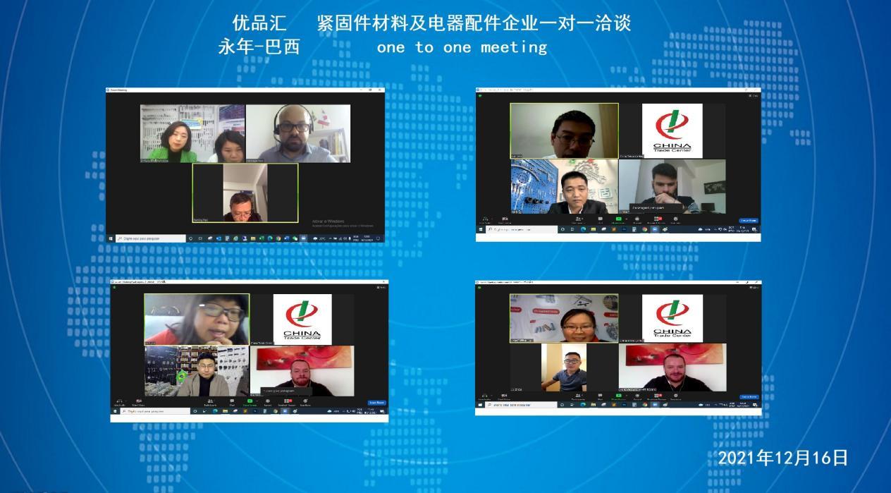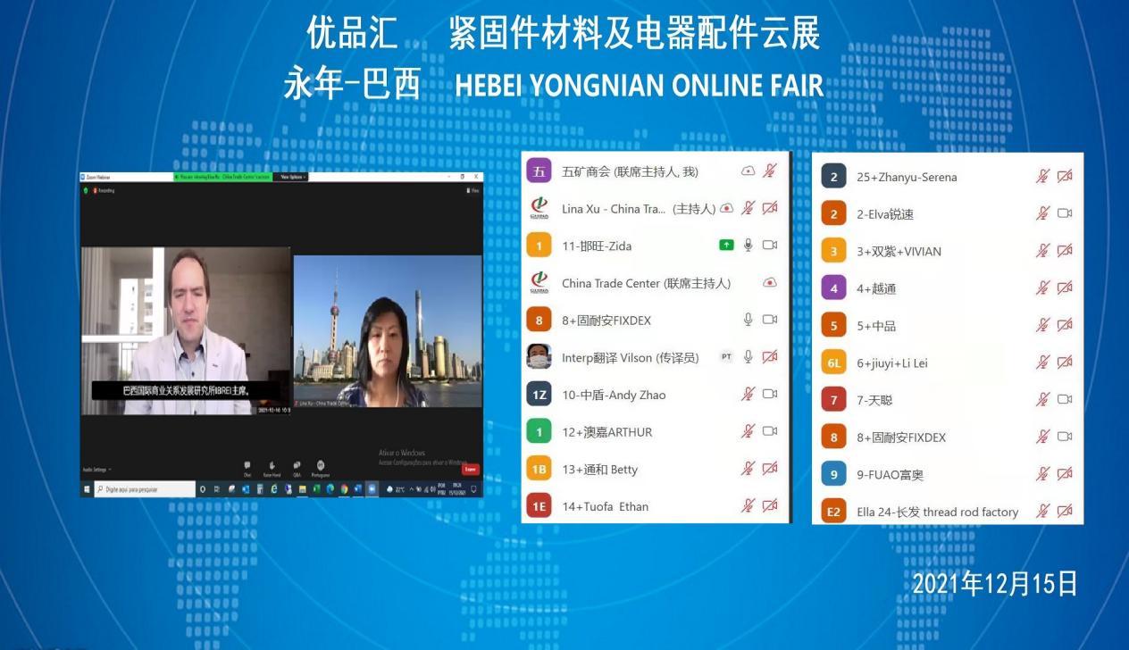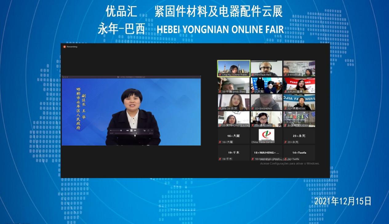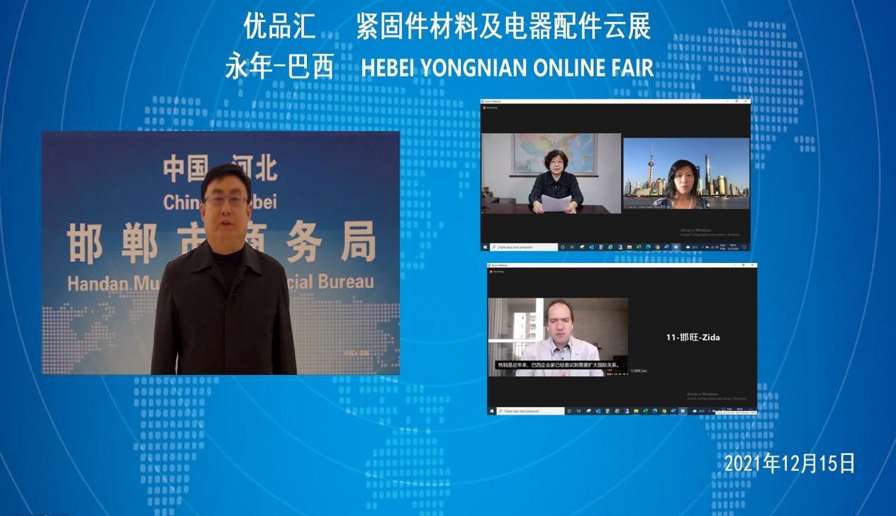 "Yongnian Quality Products--Fastener Materials and Electrical Accessories Online Fair" was successfully held from December 15 to 16, 2021. Twenty-five high-quality fastener materials and electrical accessories enterprises from Yongnian District, Handan City, Hebei Province carried out "cloud docking", "cloud negotiation" and "cloud transaction" with Brazilian professional buyers through online platforms, to help Yongnian fastener materials and electrical accessories products go overseas online.